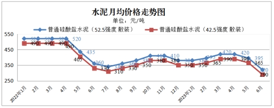 监测的普通硅酸盐水泥每吨52.5级320元、42.5级290元,总体均价305元,环比下降19.74%。