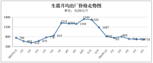 监测的每50公斤三元生猪(出厂价格)均价718元,环比下跌5元,跌幅0.69%。