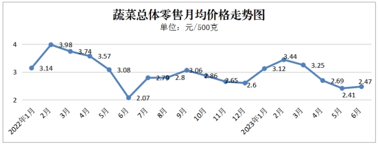 图6 2022年1月以来每月蔬菜均价监测