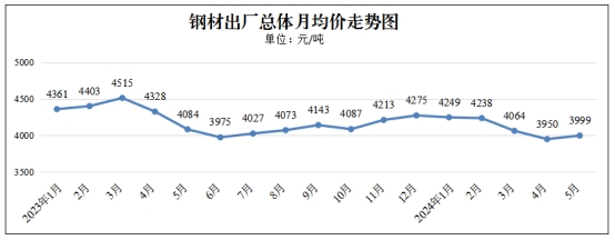 监测的5个品种钢材出厂价(含税)出现区间震荡的行情,每吨总体月均价3999元,环比(与4月份相比,下同)上涨49元,涨幅1.24%。
