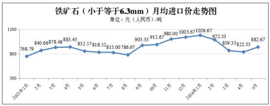 监测的铁矿石进口价格为每吨882.67元,环比上涨60.34元,涨幅7.34%。