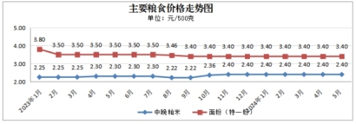 注:该指标数据采用大润发超市花山店、雨山店和同济花园、新岗等集贸市场中晚籼米、面粉(特一粉)的平均零售价格。数据由市发展改革委协调提供。