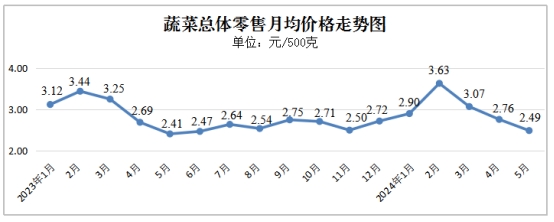 图7 2023年1月以来每月蔬菜均价监测