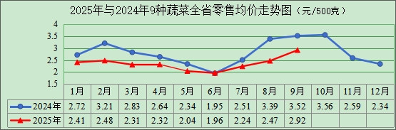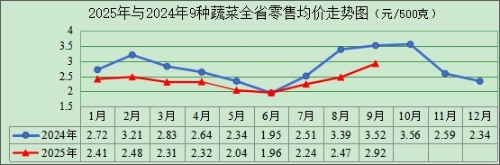 (四)蔬菜价格稳中趋降。进入四季度,天气逐渐转凉利于蔬菜生长,地产菜大量上市,市场供应增加,预计蔬菜价格逐步回落,但要关注极端天气等突发情况可能对蔬菜生产、运输造成影响,从而导致部分蔬菜价格出现较大波动。